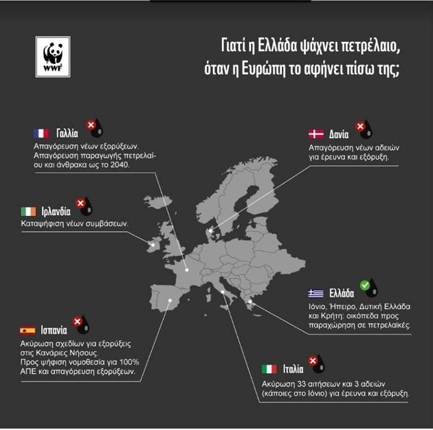 Γιατί επιμελώς αποκρύπτεται ότι σήμερα η παγκόσμια οικονομία μπαίνει στην περίοδο της απανθρακοποίησης; Ότι όλο και περισσότερες χώρες παίρνουν μέτρα απεξάρτησης από το πετρέλαιο και τον άνθρακα; Ότι η γαλλική Total και η ισπανική Repsol έρχονται για εξορύξεις στη χώρα μας αλλά δεν μπορούν να κάνουν το ίδιο σε Γαλλία και Ισπανία αντίστοιχα γιατί εκεί απαγορεύτηκαν πρόσφατα οι νέες εξορύξεις;
